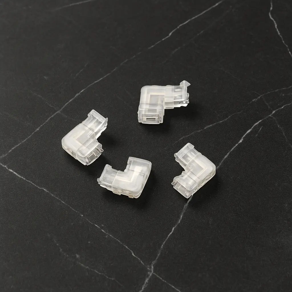 Il connettore a L COB 2PIN 8mm monocolore è la soluzione ideale per realizzare collegamenti angolari puliti e sicuri nelle installazioni LED. Progettato per strisce LED COB da 8 mm, consente di effettuare curve a 90° senza zone d’ombra o interruzioni della luce.